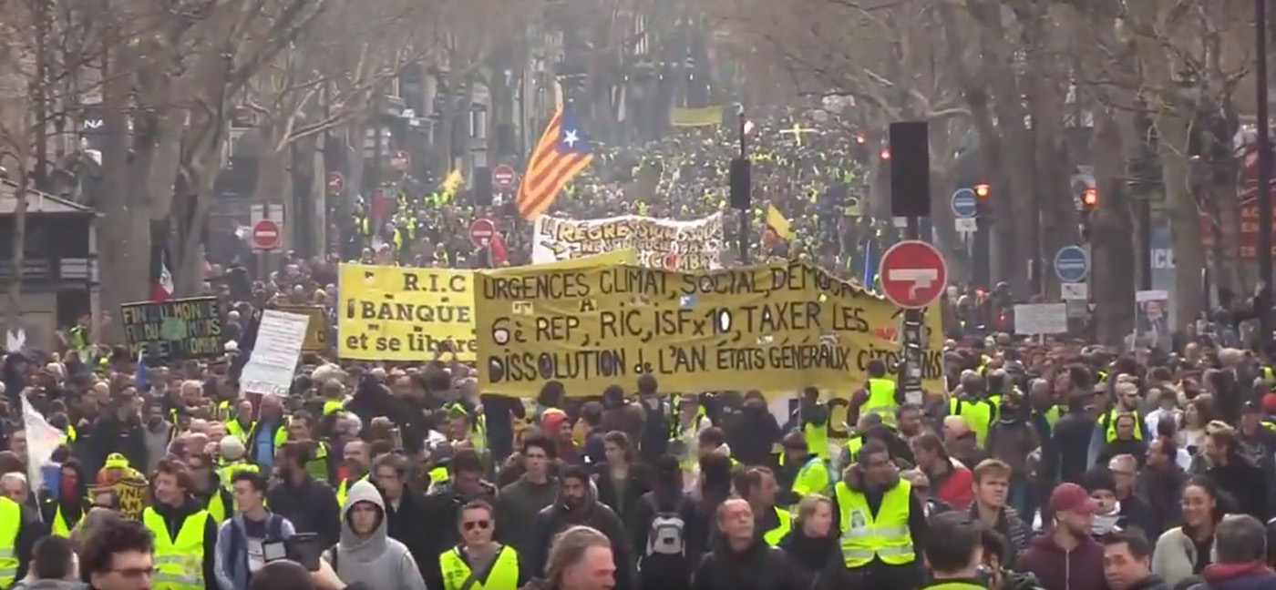 Nn kollased vestid olid täna üle Prantsusmaa väljas juba 19. nädalat järjest, et avaldada meelt valitsuse vastu ja nõuda president Emmanuel Macroni tagasiasutumist. Meeleavaldajatele saatis Prantsuse valitsus vastu taas kümneid tuhandeid politseinikke.