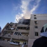 Sotsiaalmeediasse on pandud pildid selle kohta, kuidas Ukraina pealinnas Kiievis oli tänase kolmapäeva, 16. märtsi hommikul pommitamise tagajärjel elumajas varing.