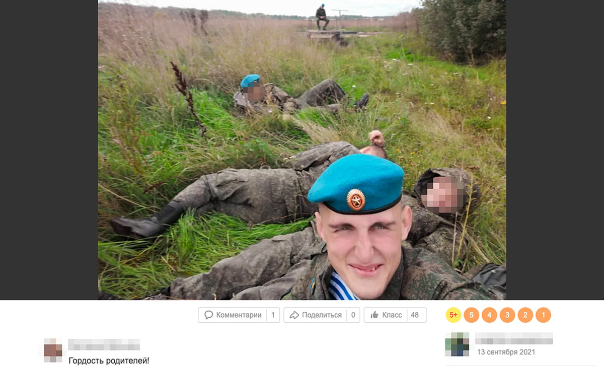 Maksim Gruševski helistas oma emale Nataljale. Maksim andis vande 2021. aasta detsembris – tema ema postitas sotsiaalvõrgustikesse foto oma pojast dessantväelase vormis. Kommentaarides küsib Natalja sõbranna, kus tema „juba täiskasvanud poeg” teenib, Natalja vastab, et Pihkvas.