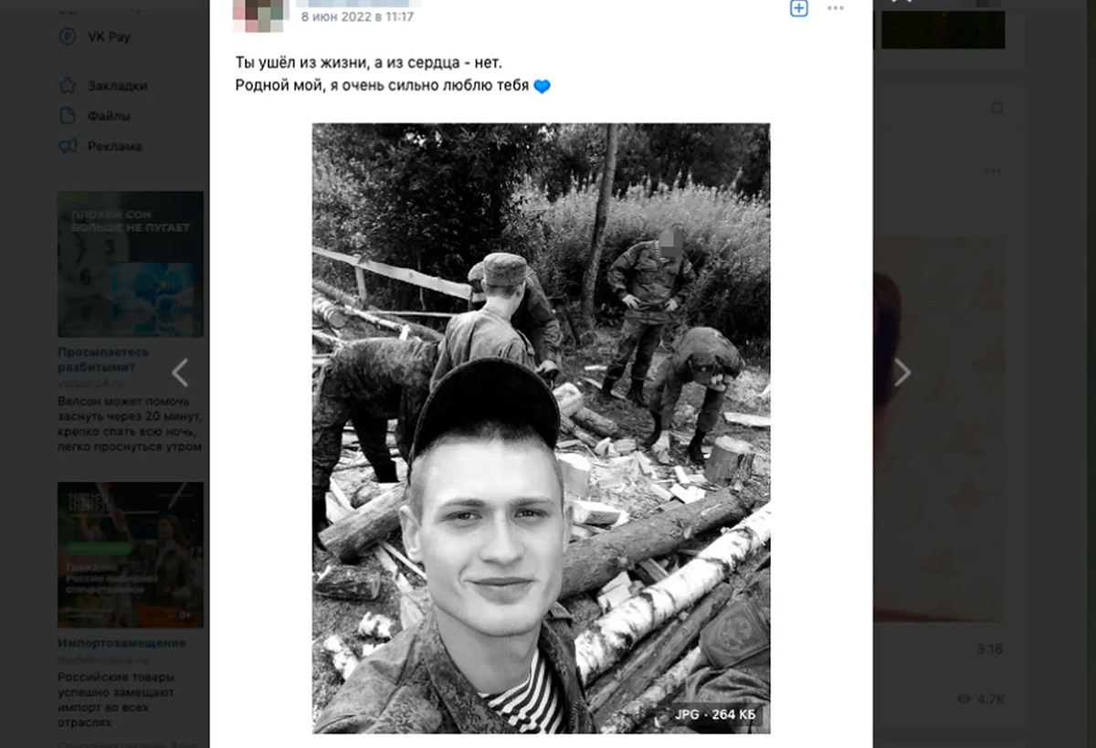Nüüd on tema noore naise Lera lehel VKontakte kanalis kurb postitus tema surnud abikaasa mälestuseks: „Lahkusite elust, kuid mitte südamest. Mu kallis, ma armastan sind väga.” Avaldamise kuupäev on 8. juuni. Kommentaarides toetavad teda sugulased ja kirjutavad, et „Dima on kangelane!”.