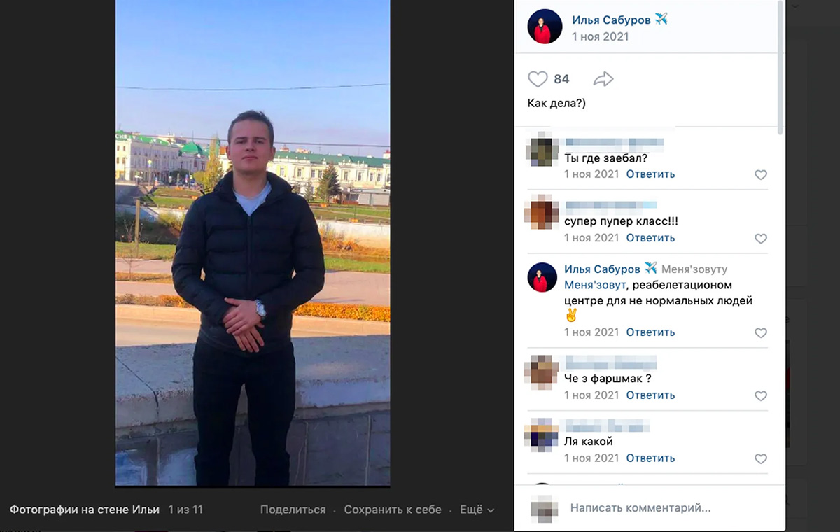 20-aastane Ilja Saburov helistas telefonilt oma emale Anna Saburovale. Saburovi lehel sotsiaalvõrgustikus VKontakte ühe 2021. aasta novembris esimest korda üle pika aja avaldatud foto all küsivad sõbrad temalt: „Teenitud?”, „Kuhu sa kadusid?”. Ilja vastab, et „veel üks aasta.”