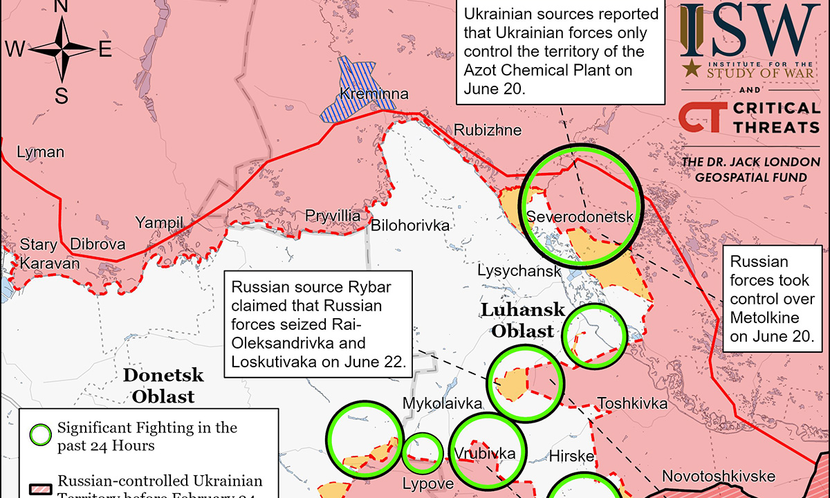 Ukraina õhujõud ja droonid on olnud aktiivsed mujal, näiteks eelmisel nädalal Hersoni oblastis. Ukraina väed korraldasid eile kolmapäeval, 22. juunil eduka droonirünnaku Venemaal Rostovi oblastis asuva Novošatsinski naftatöötlemistehase vastu. Tehas asub Ukraina piirist 15 kilomeetri kaugusel. Vene allikate väitel oli rünnak tulnud Donetski oblasti poolt.
