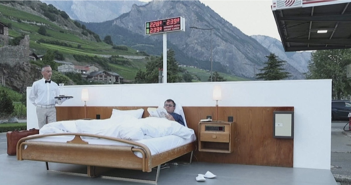 Šveitsi kunstnikest vennad pakuvad ööbimist null-tärni hotellis lageda taeva alla tankla kõrval. Nad pakuvad sellist kogemust juba alates 2008. aastast.