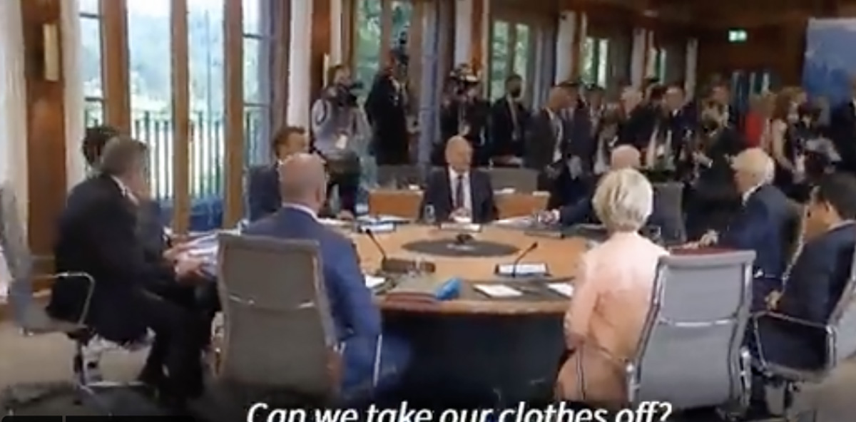 Sotsiaalmeediasse pandud videos küsib Briti peaminister Boris Johnson pildi tegemise ajal, kas peaks särgid seljast võtma, et välja paista paremad kui Putin. Kanada peaminister Justin Trudeau pakkus välja, et võiks hobuse selga istuda.