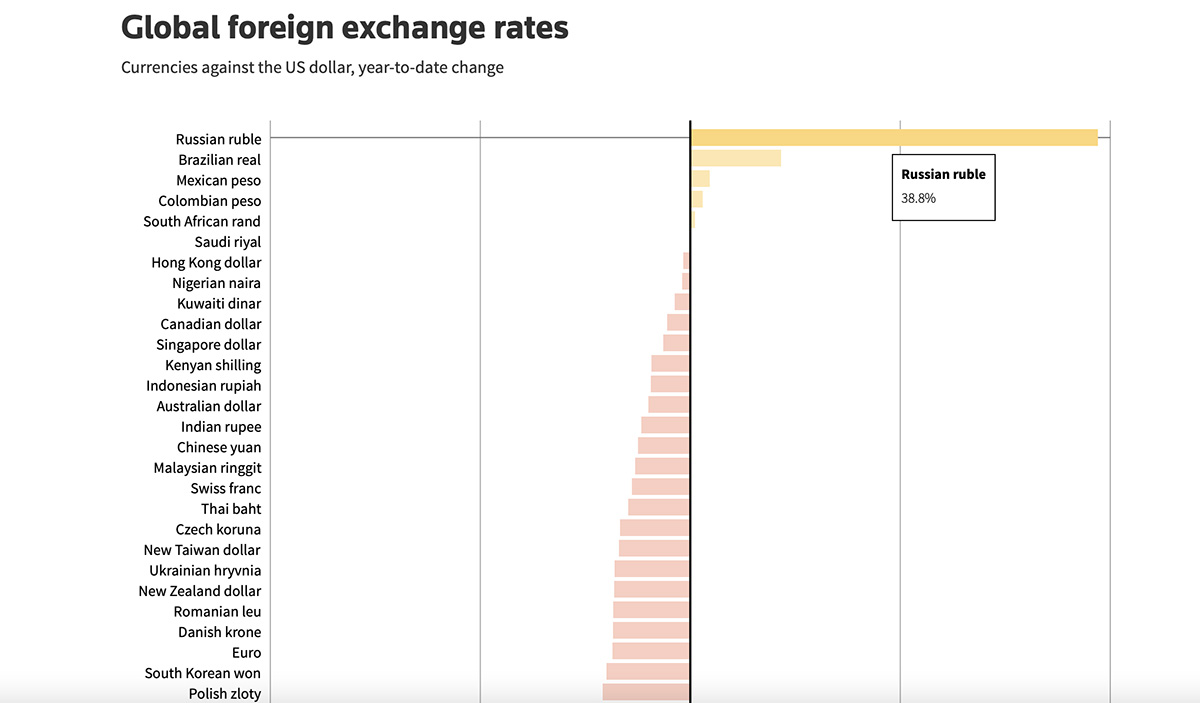 Kui pärast Venemaa rünnakut Ukrainasse prognoositi, et rubla kurss langeb dollari suhtes 200 peale – nii rääkis isegi USA president Joe Biden – siis tegelikkuses on rubla tõusnud dollari suhtes 70 pealt 50 peale.