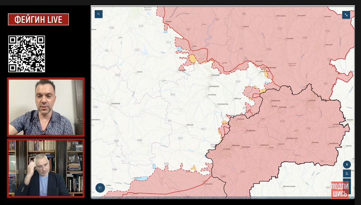Arestovõtš ütles sõja olukorda kommenteerides, et Vene väed liiguvad igal pool aeglaselt edasi, seda nii Donbassis Severedonetski kandis kui Harkivi suunal. Liikumine on aga aeglane, sest näiteks Severodonetski linna võtavad Vene väed juba 10 päeva.