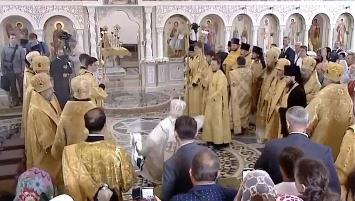 Enne seda on videos näha, kuidas ta pritsis jumalateenistuse ajal kirikus püha vett.
