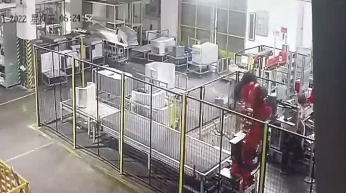 Videos on näha, kuidas robot kaldus kõrvale tavapärasest tööoperatsioonist ja litsus vastu lähedal olnud töötajat.