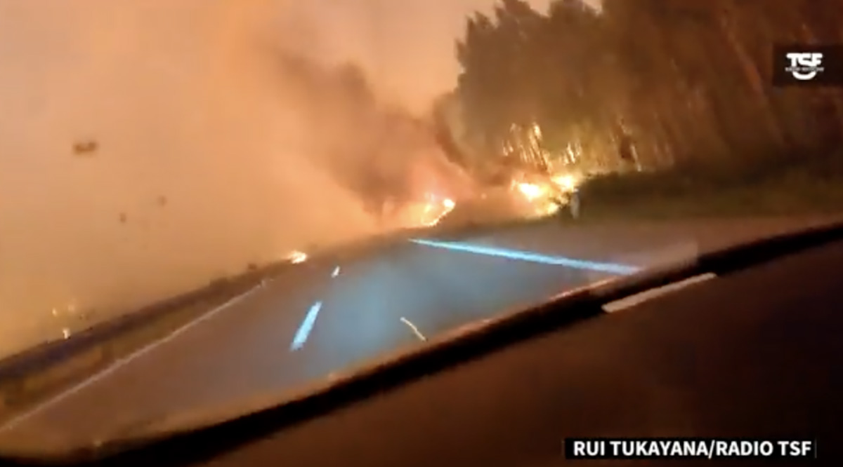 #ICYMI VIDEO: A car drives through a wildfire in central Portugal, where over 2,000 firefighters were battling four major fires across the country pic.twitter.com/ZWrzU9ODUV