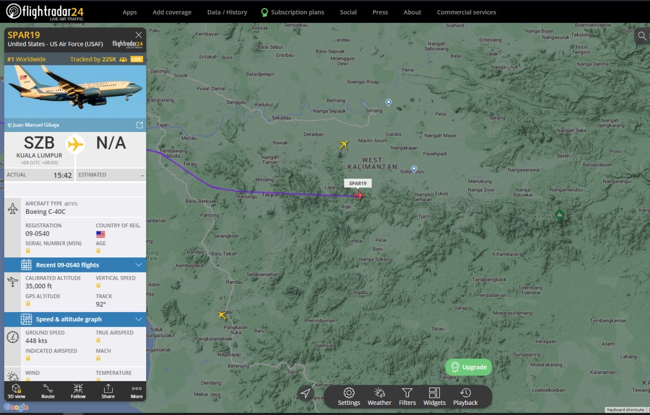 Lennuk lendab Indoneesia ja Filipiinide kaudu. Lennukit saadavad USA hävitajad.