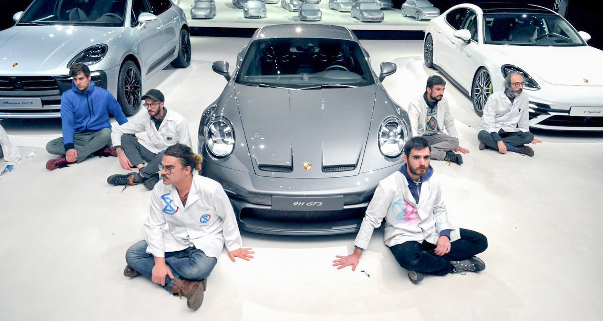 Kliimasõdalased ei olnud rahul, kui nad end Saksamaal Volkswageni tehases Porsche paviljonis põranda külge kleepisid ja nad ööseks sinna jäeti olukorras, kus neil polnud võimalik toitu tellida ja tualetis käia.