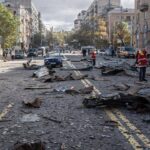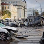 Ukraina president Volodõmõr Zelenski avaldas pildid tänase esmaspäeva, 10. oktoobri raketirünnaku tagajärgedest Kiievi linnas.
