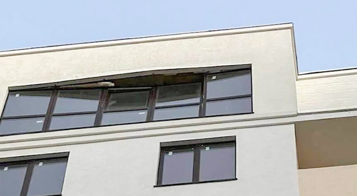Piltidel on näha, kuidas aknaraamid on plahvatuse mõjul sissepoole väändunud.