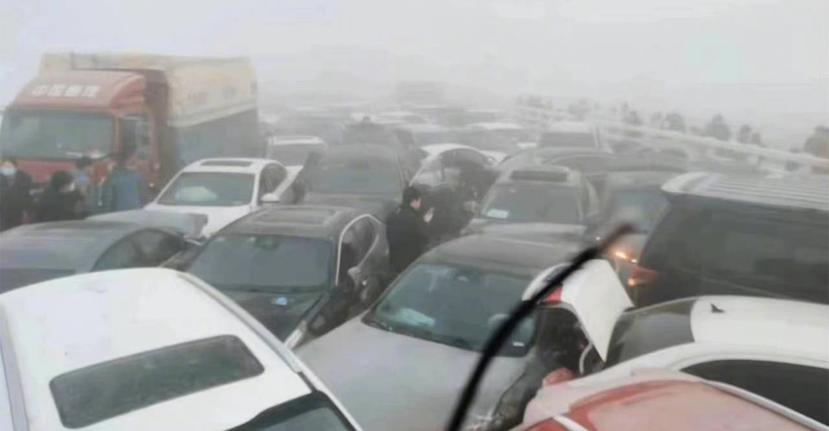 Sotsiaalmeediasse on pandud video ja pildid ahelkokkupõrkest Hiinas, kus osales mitusada autot.