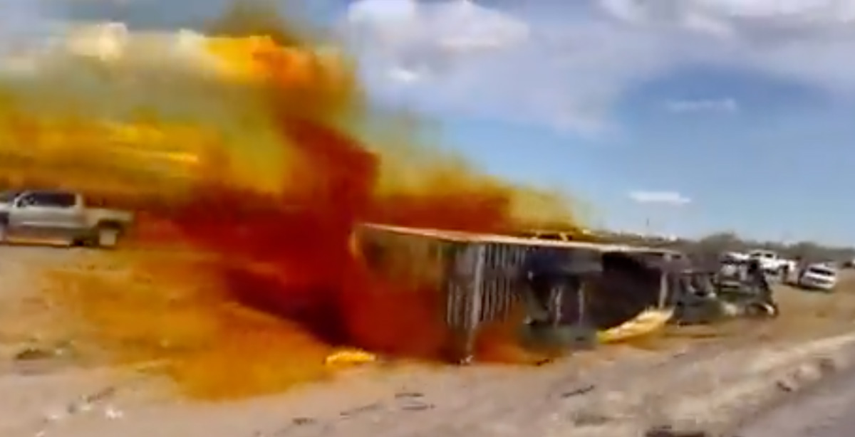 BREAKING – New footage of truck carrying hazardous material overturned on I-10 in Tucson, Arizona, people warned to shelter in place pic.twitter.com/9mzxXklayz