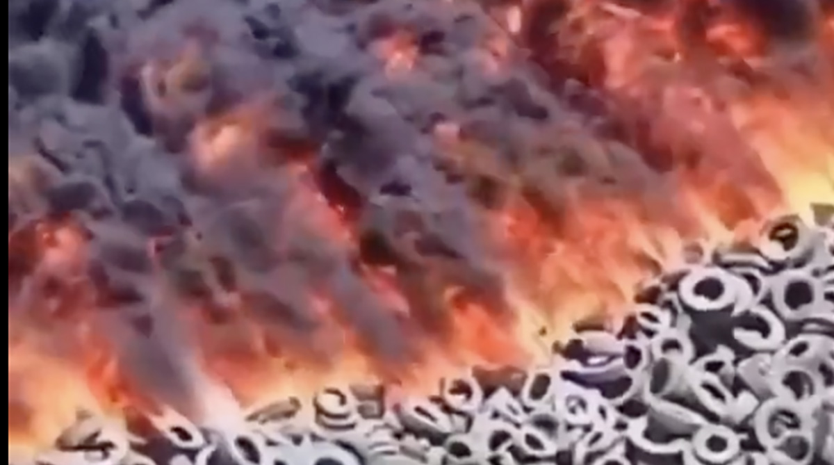 Look at this apocalyptic burn of 42 million tires in Kuwait, spewing toxic carcinogenic chemicals of benzene, xylene, ethylene, and acetone into the atmosphere.