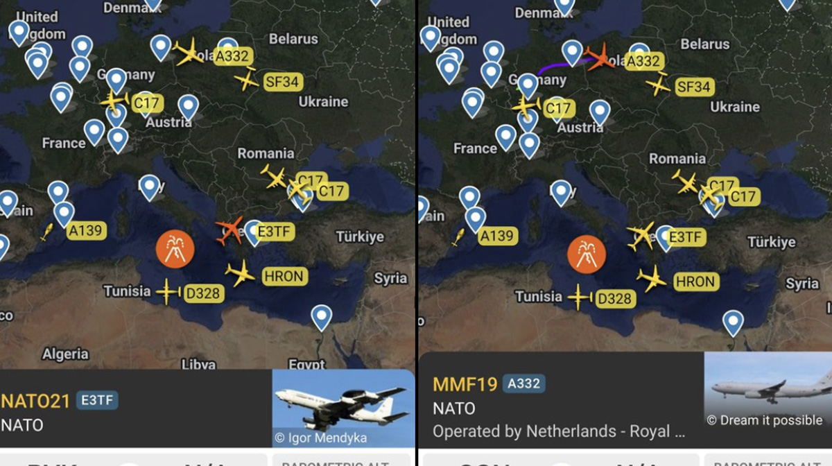E-3 lendab tavaliselt Poola/Ukraina piirile, pakkudes katet nii Ukrainale kui ka Poolale, kui rakett peaks teelt eksima. KC-135 on selleks, et tankida nii lennukit E-3 kui ka Poola lennukeid F-16, mida nende rünnakute ajal samal põhjusel kasutatakse.
