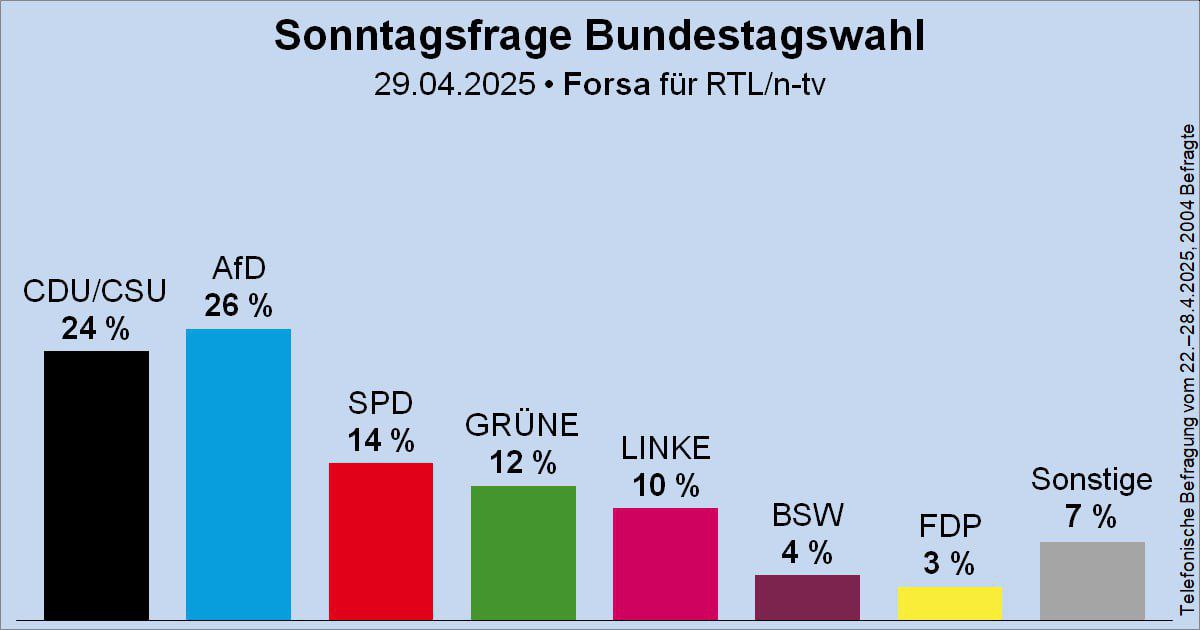 Viimaste küsitluste põhjal on AfD Saksamaa juhtiv erakond.
