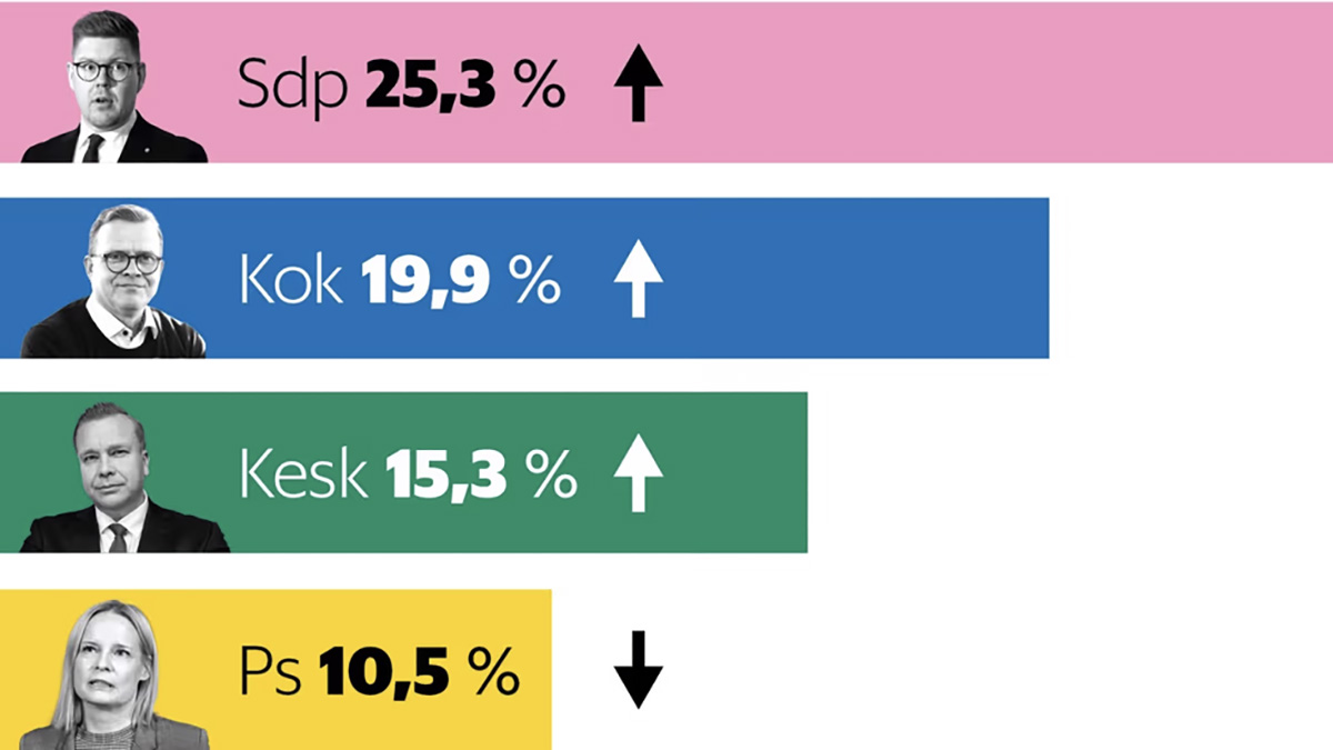 Kui praegu toimuksid parlamendivalimised, hääletaks Antti Lindtmani juhitava Sotsiaaldemokraatliku Erakonna poolt 25,3 protsenti soomlastest, selgus Helsingin Sanomate tellimusel uuringufirma Verian poolt läbi viidud arvamusküsitlusest.
