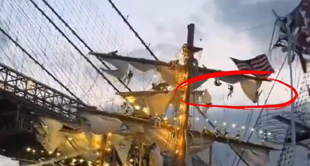 One of the ship’s 150-foot masts struck the bridge, snapping and triggering a large-scale search and… pic.twitter.com/dEg1hM4Z8l