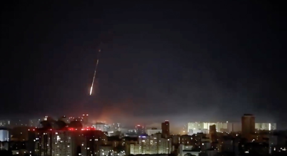 Videost on näha, et Ukraina pealinnas pole enam üldse õhutõrjet. Kõik raketid lendavad läbi.