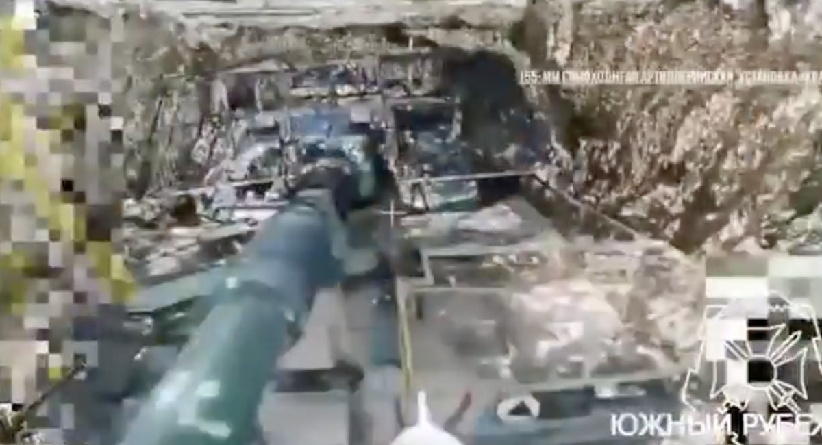Videos on näha, kuidas haubits on hoolikalt peidetud metsa sisse, aga sellest pole abi. Video on üles võetud Donetski oblastis Kramatorski ligidal.
