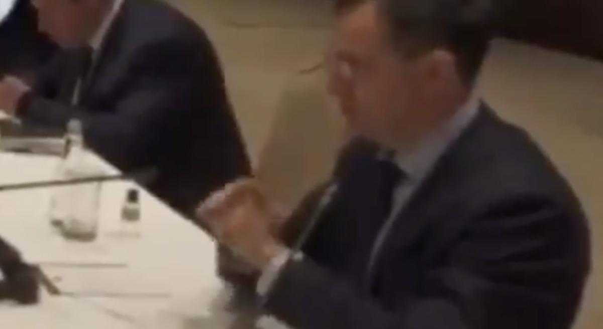Sotsiaalmeediasse on pandud video selle kohta, kus Vene delegatsiooni juht Vladimir Medinski annab väidetavalt kätega mõista, mis saab Ukrainast, kui Venemaa tingimustega ei nõustuta.