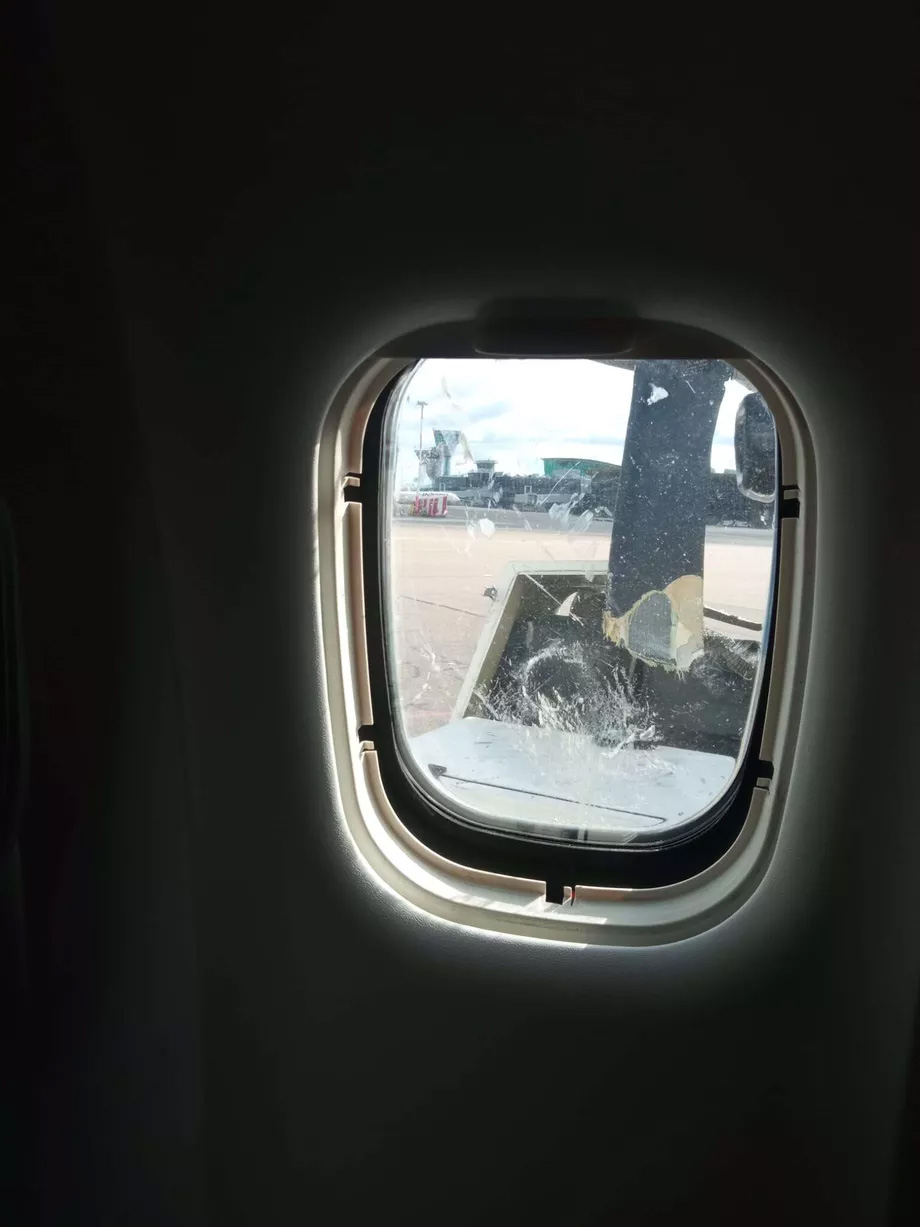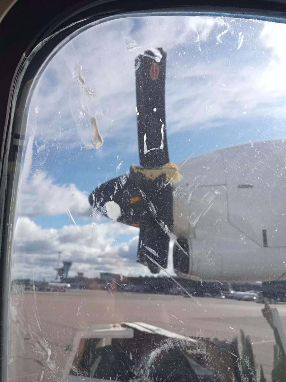 reisija tehtud piltidelt on näha, kuidas löögi jõust on propellerlabad lahti murdunud. Tõenäoliselt tabasid aknaklaasi purunenud propellerlabade tükid.