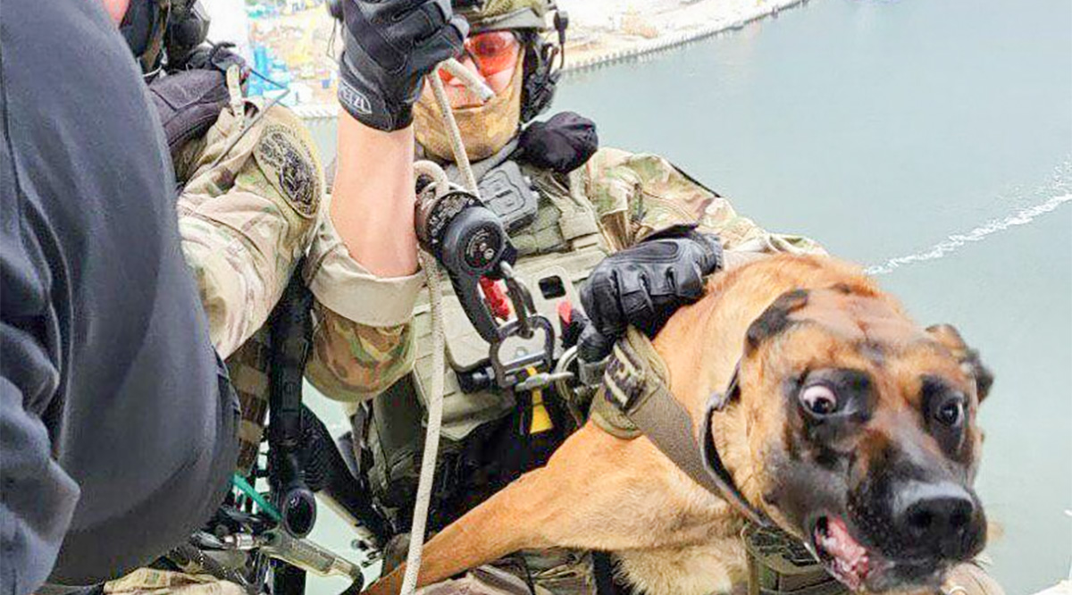“Polish SPKP operator preparing for a helicopter descent with his not so keen service dog.” pic.twitter.com/7lARcygpEE
