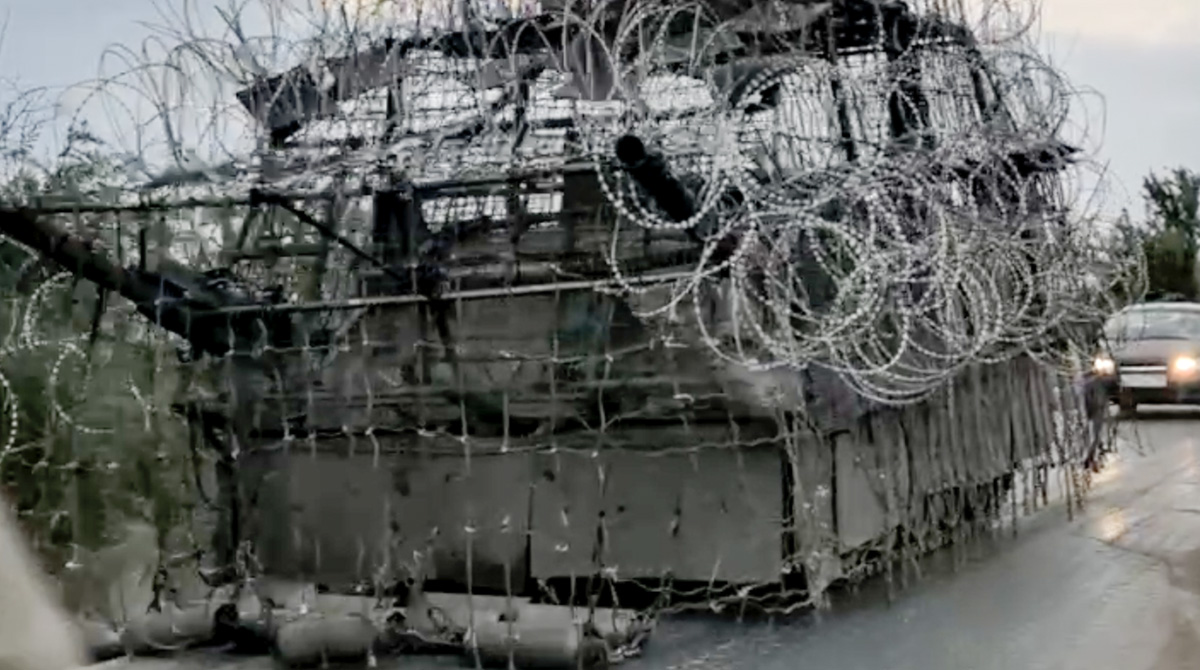 Nagu videost näha, siis on see üsna veider. Tegemist on väidetavalt Vene tankiga, mis on muudetud droonikindlaks.