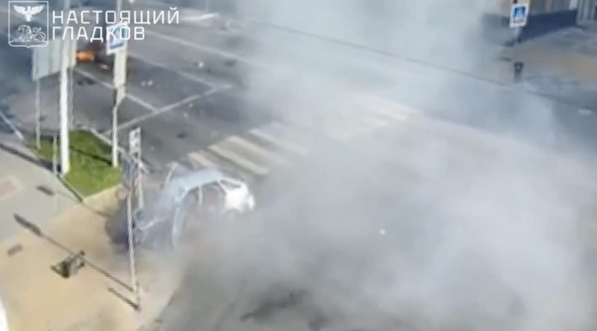 Sotsiaalmeediasse on pandud video, kuidas Venemaal piiriäärses Belgorodi linnas sai täna neljapäeval, 14. augustil tabamuse sõiduauto.