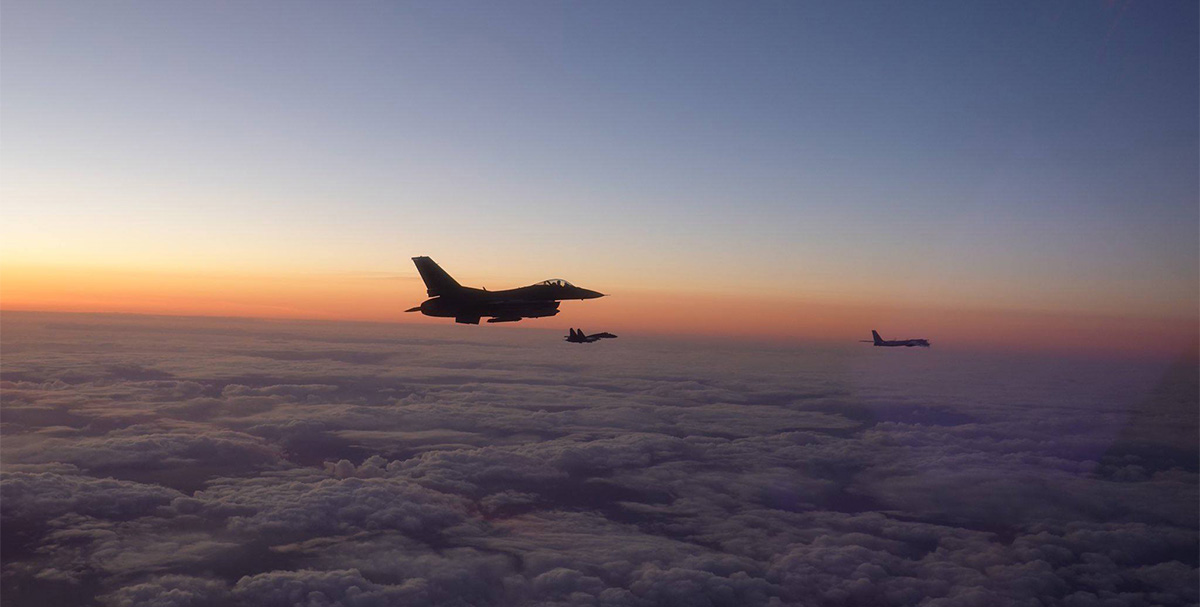 USA avaldas pildid Vene sõjalennukite tõrjumisest Alaska ligidal. Piltidel tõrjuvad USA hävitajad F-16C Fighting Falcon Alaska lähedal Vene hävitajaid Su-35 ja strateegilist pommitajat Tu-95MS.