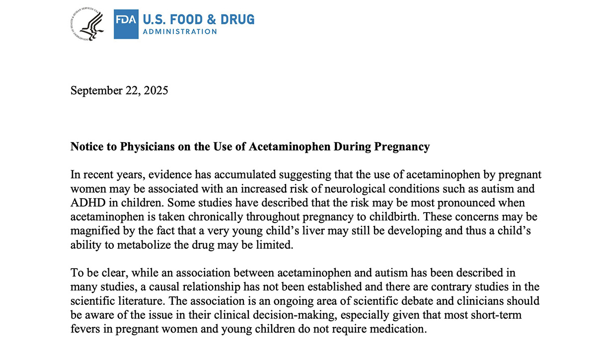 USA ravimiamet FDA on edastatud seisukoha seoses atsetaminofeeni (paratsetamooli) mittesoovitamisega rasedatele naisele.