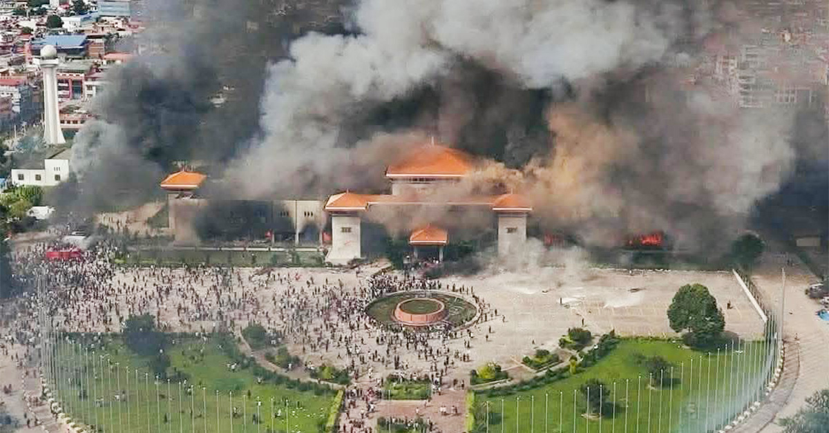 Nepal Parliament gutted & burnt in Kathmandu by thousands of youth protestors.