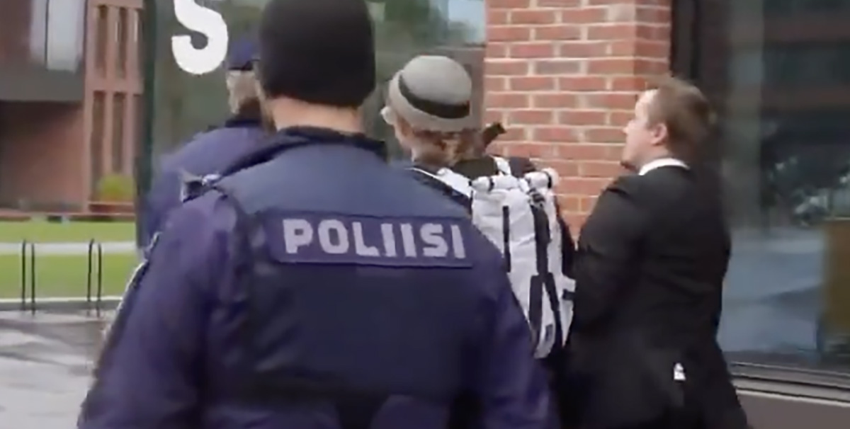 Sotsiaalmeediasse on pandud video, kuidas Soome presidendile Alexander Stubbile küsimuse Iisraeli relvaostude kohta esitanud mees võeti kinni ja viidi arestimajja.