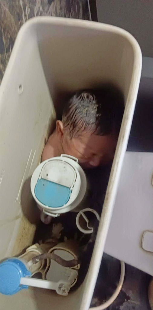 Töötaja tõstis tualeti loputuskasti kaane üles ja oli šokeeritud, kui leidis lapse pooleldi veega täidetud anumasse surutuna, kuhu ta arvatavasti vahetult pärast sündi pandi.