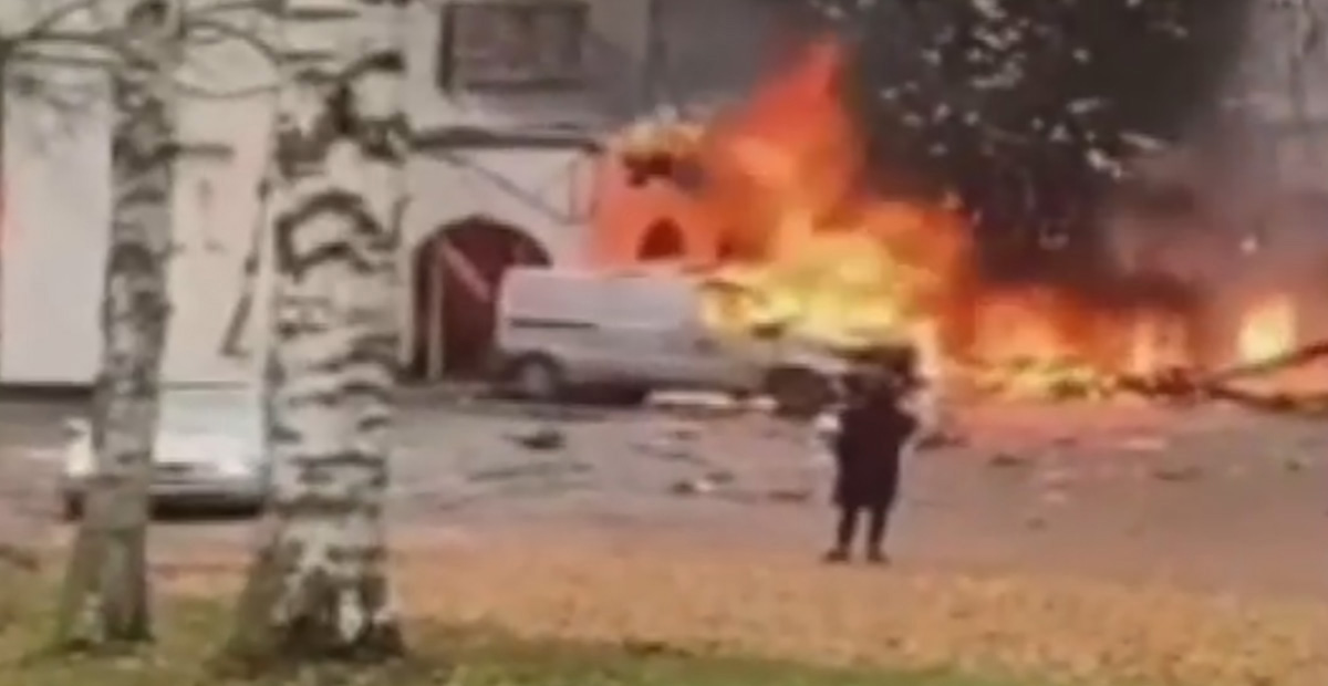 Videos on näha, kuidas hotelli hoone juurest aetakse kaugemale Volvo, millel on Eesti numbrimärgid.