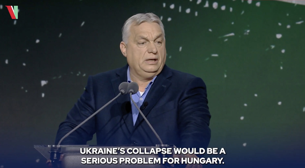 Orbán ütles, et Ukraina kollaps on kahjulik Ungarile, mistõttu püüab Ungari seda vältida. 44 protsenti Ukraina elektrist ja 58 protsenti gaasist tuleb Ungarist – ilma selleta oleks Ukraina juba kokku kukkunud. Ungari impordib Vene gaasi ja saadab seda edasi Ukrainasse – Brüsselis seda tema sõnul ei mõisteta.