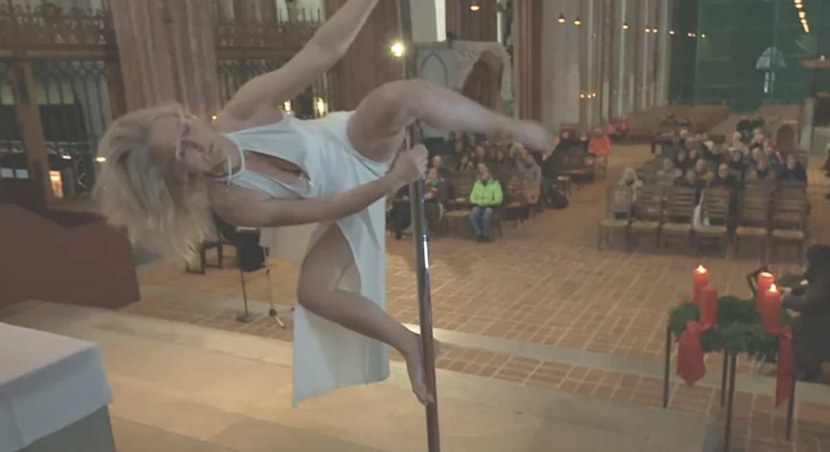 WTF: A 50-year-old German woman does “spiritual” pole dancing in a church pic.twitter.com/eeF9jYlhXf