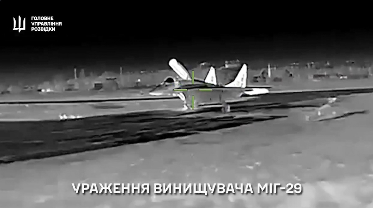 🇺🇦 #Ukraine – 🇷🇺 #Russia: Footage from an operation which took place earlier today shows an FP-2 drone strike by Ukraine’s Defence Intelligence destroying a Russian MiG-29 at the Kacha airfield in occupied Crimea.