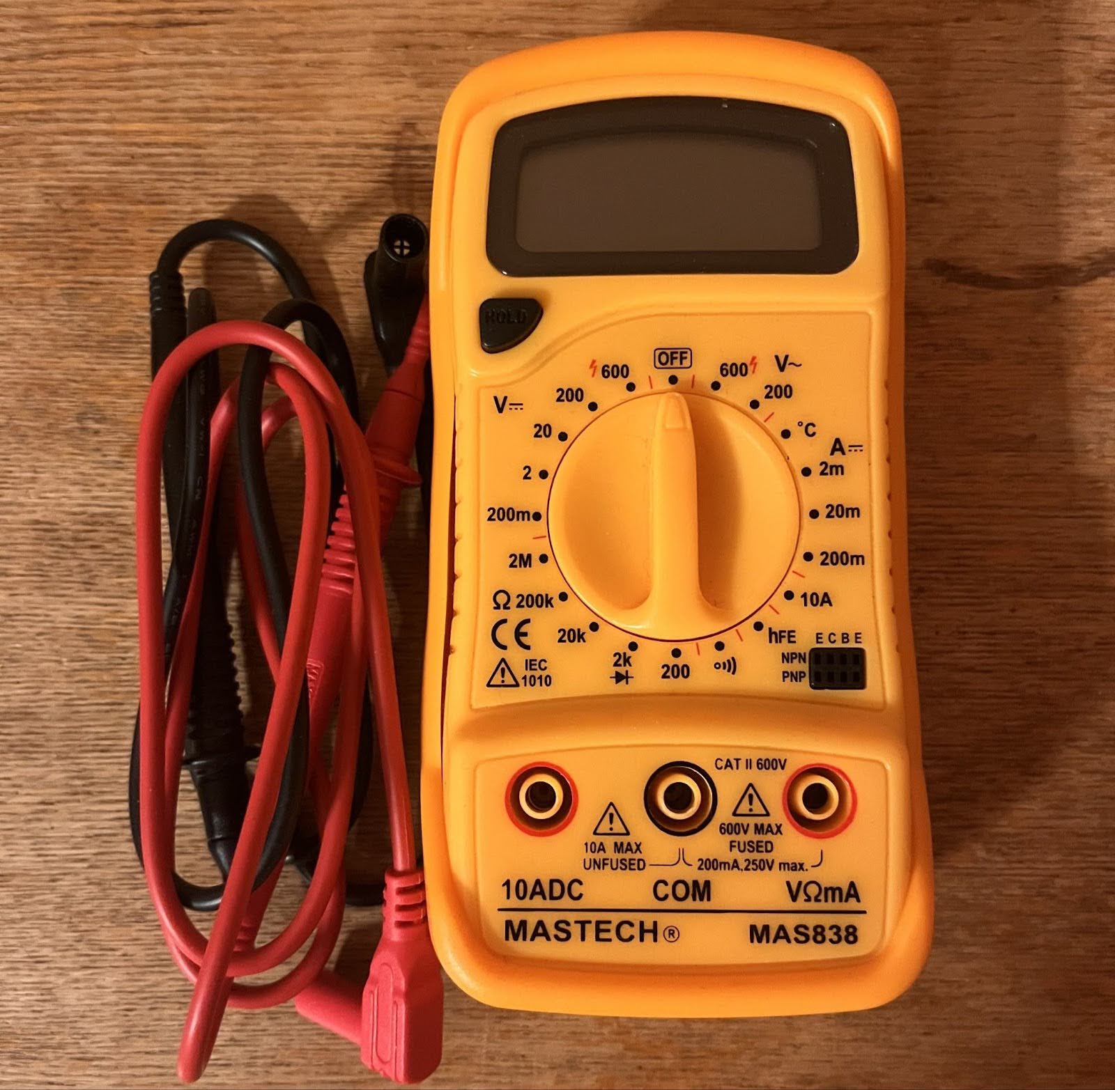 Aloita liittämällä musta mittausjohto liitäntään, joka on merkitty “COM”. Tämä on aina miinus- eli maa-liitäntä. Sen jälkeen kytke punainen mittausjohto liitäntään, joka on merkitty “VΩmA” tai pelkällä “V”-symbolilla. Älä käytä 10A-liitäntää, sillä se on tarkoitettu virran mittaamiseen eikä jännitteen tarkistamiseen.
