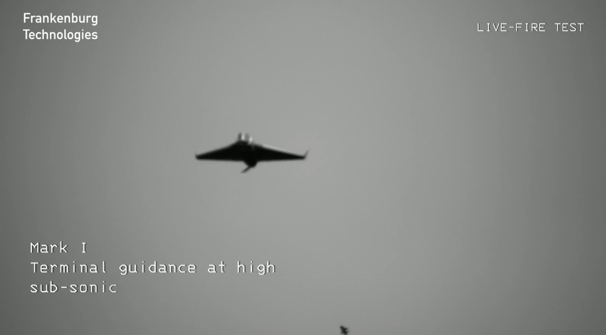 Videos on näha Frankenburg Mark I raketti lühimaa õhukaitselahingus Shahed-tüüpi sihtmärgi vastu.