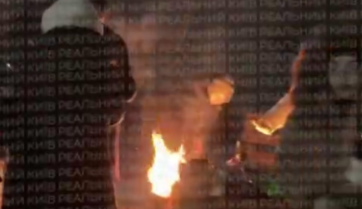 Sotsiaalmeediasse on pandud video, kuidas Ukraina pealinnas Kiievis kogunevad kortermajade elanikud välja lõkke äärde, et sooja saada ja süüa teha.
