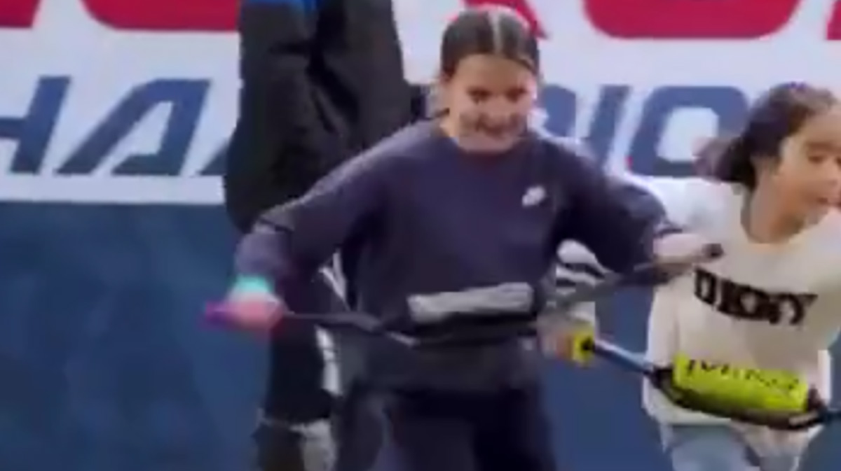 Selle ala „sportlastel” muidugi mootorratast pole – neil on käes ainult leistang, mida nad käes hoiavad ja maastikul kihutavad, nagu sõidaksid nad päris ratastel võidu.