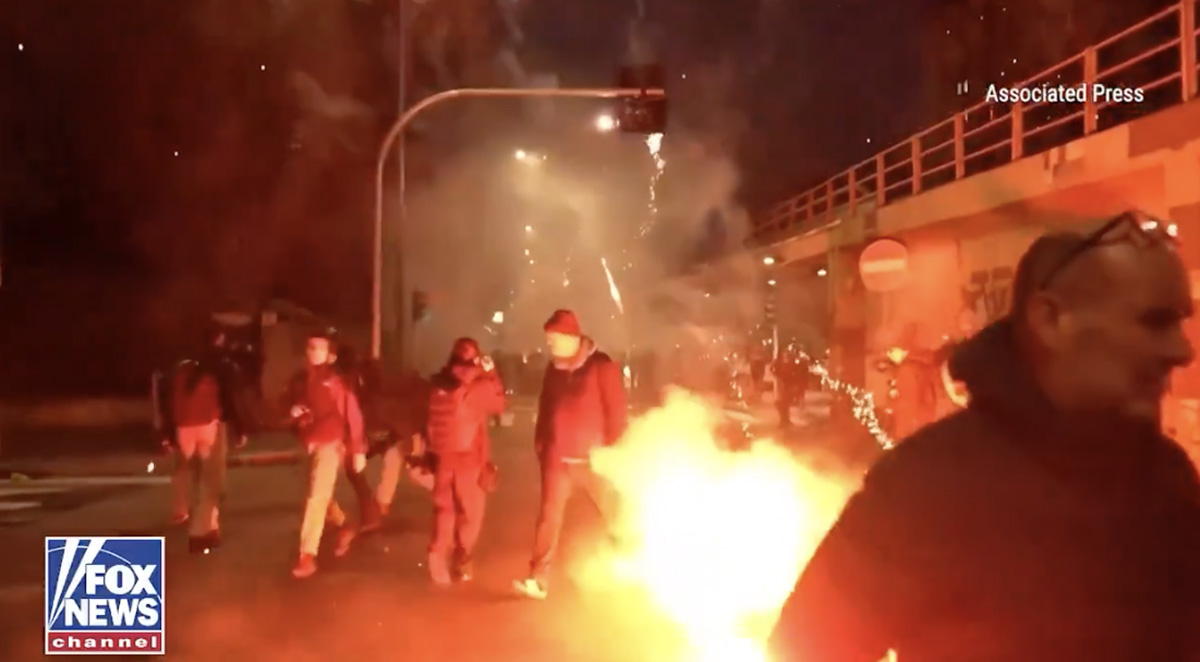 CHAOS IN THE STREETS: Masked individuals launch fireworks at police after a protest at the Olympics in Italy. pic.twitter.com/97LMlfacVz