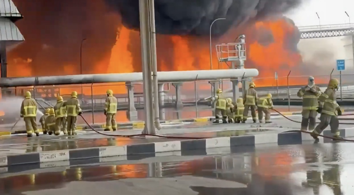 Kuveidi lennujaamas puhkes täna laupäeval, 28. märtsil pärast Iraani rünnakut suur tulekahju.