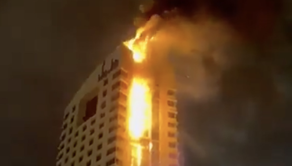 Sotsiaalmeediasse on pandud video, kuidas Kuveidis sai droonirünnakus tabamuse ja süttis põlema kõrghoone.