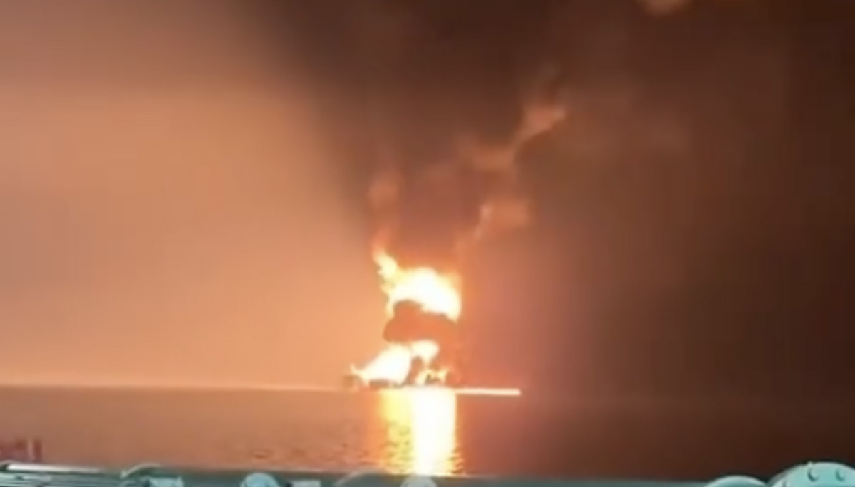 Sotsiaalmeediasse on pandud video, kuidas USA tanker sai Lähis-Ida Araabia Ühendemiraatide vetes tabamuse ja põles suure leegiga.