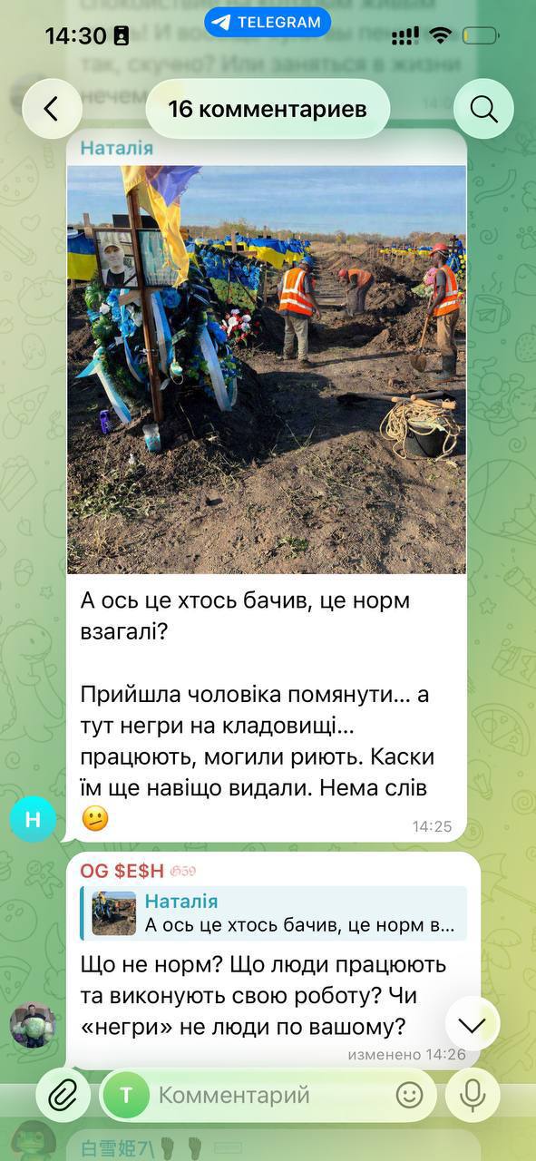 Tšerkassõs tuli naine mälestuspühapäeval kalmistule ja oli šokeeritud, kui avastas, et haudu kaevasid mustanahalised töölised.