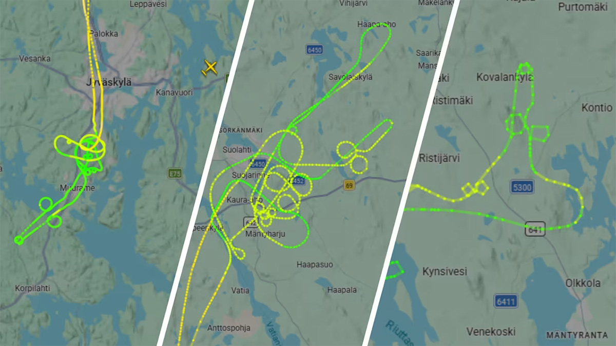 Flightradari veebisaidi andmetel osales harjutusel mitu lennukit, mis tõusid õhku Jyväskyläs Tikkakoskis umbes kell 7.30 hommikul. Radaripiltide põhjal moodustasid vähemalt neli lennukit peenisekujulisi mustreid.